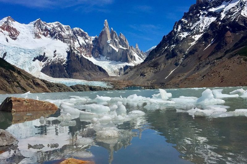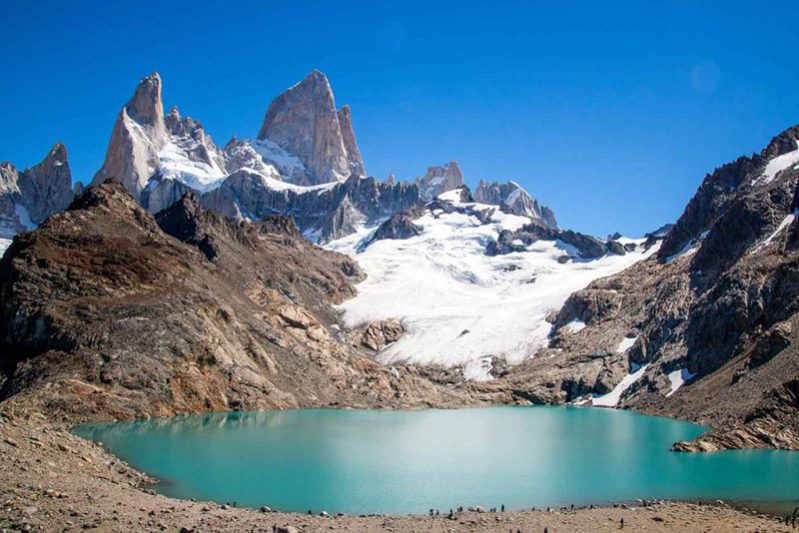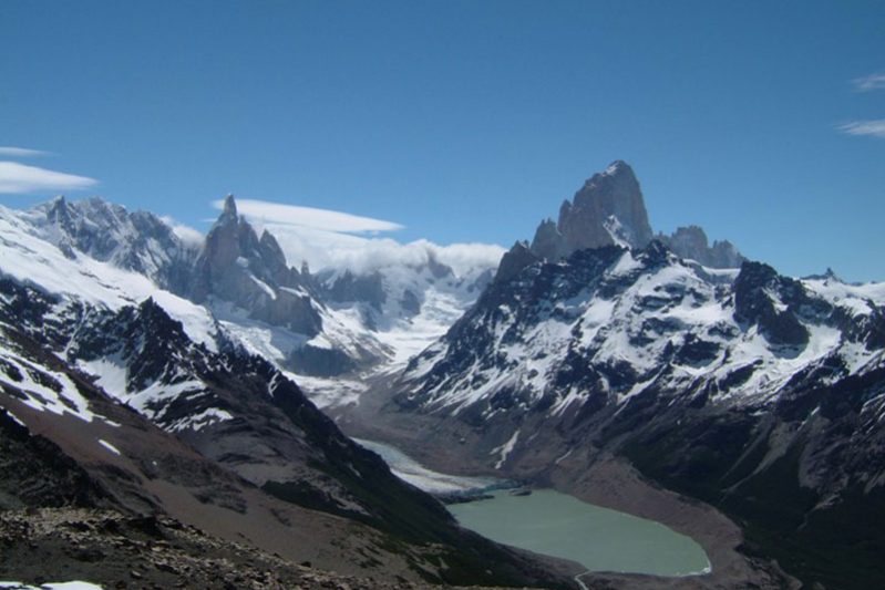 La caminata más conocida y recomendada de El Chaltén. Este sendero llega hasta un mirador natural junto a la Laguna de los Tres y tiene las vistas más espectaculares del macizo del Fitz Roy. Este es el sitio más próximo a las agujas de granito y es, sin duda alguna, la más famosa de todas las caminatas.